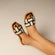 The Bellevue slide in brown delivers sophisticated, modern texture. It features a unique, oversized woven upper meticulously crafted entirely in PU. This distinctive silhouette offers a comfortable yet elevated look, adding rich, contemporary texture to any ensemble.