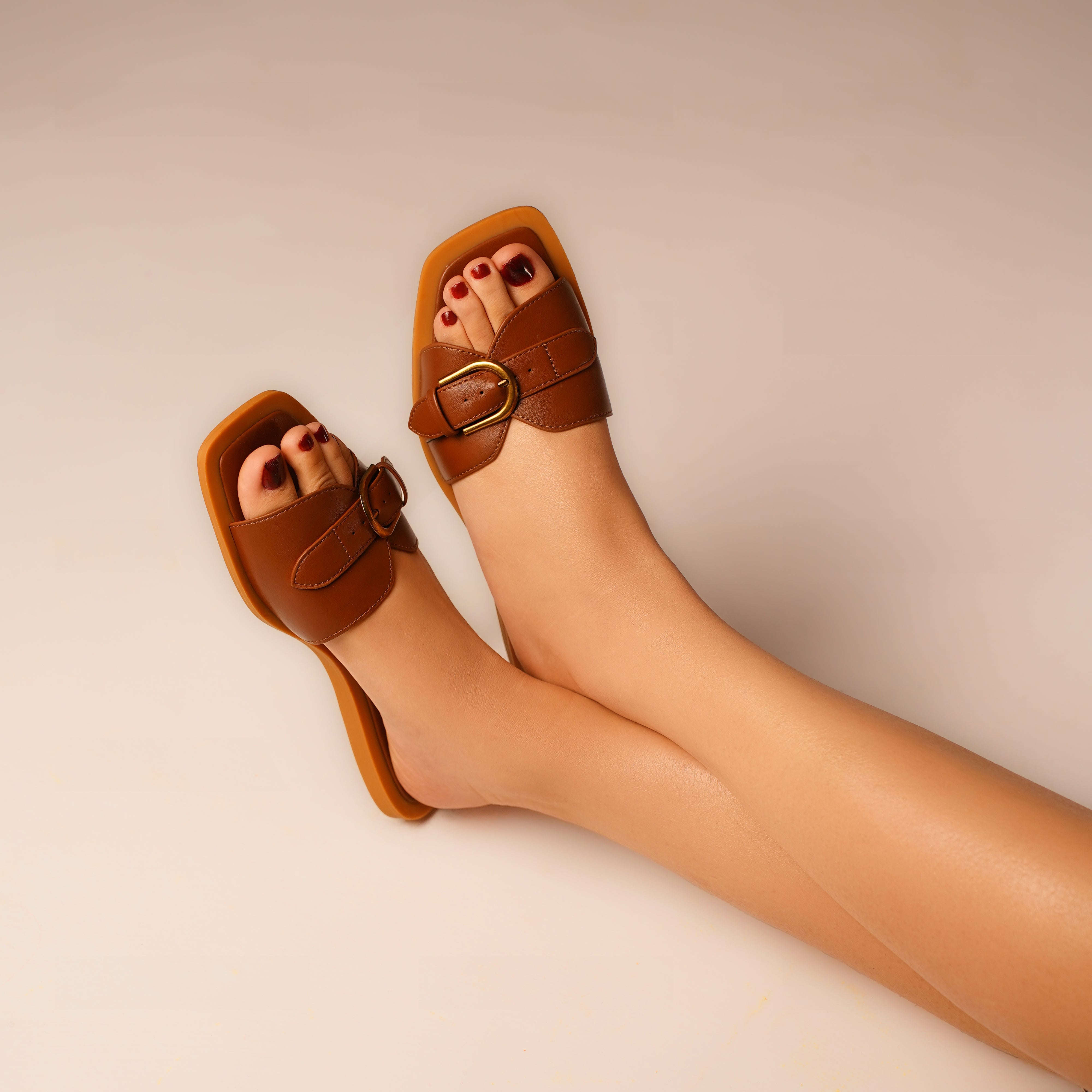 The Bryony slide in dark brown delivers essential, comfortable style. It features a broad, smooth strap crafted entirely in a versatile Dark Brown PU shade, offering effortless minimalism. This clean silhouette is a timeless staple, providing comfortable ease for everyday wear.