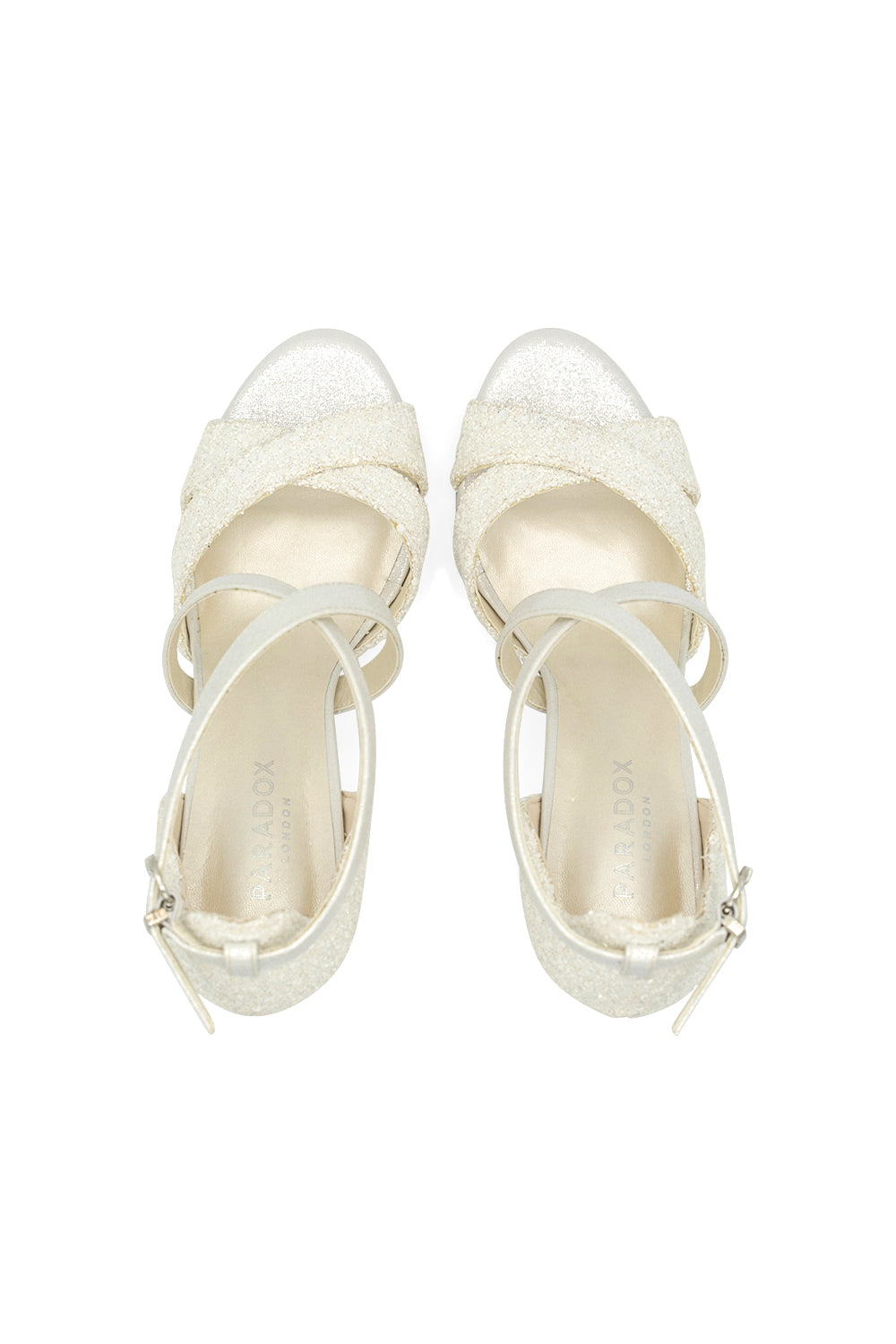 The Carina sandals from Paradox London are made in a chunky glitter which will add some dazzling sparkle to your special occasion. The cross straps will help keep you secure and the block heel will help stability