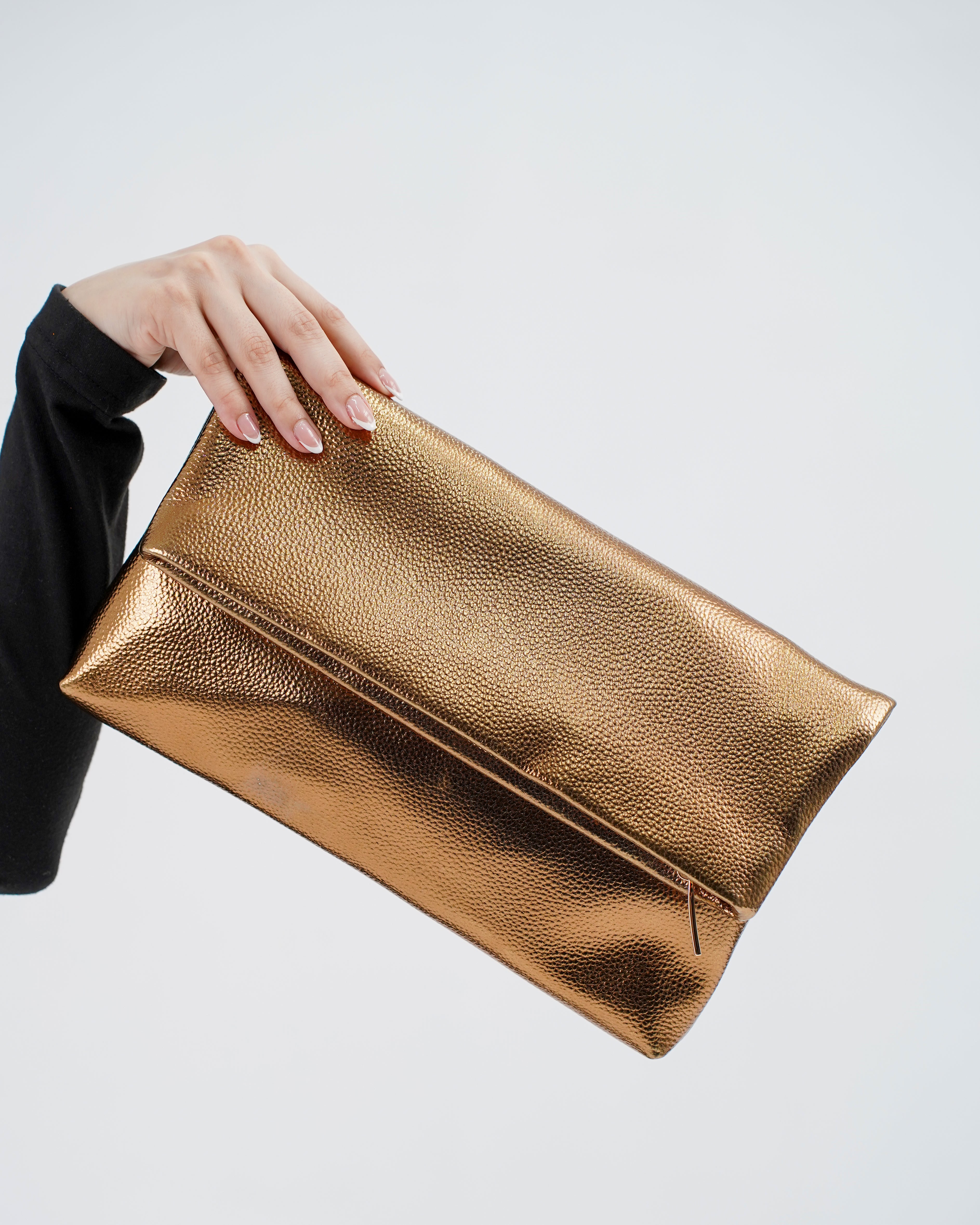 The DARLA Clutch in bronze is sleek, sophisticated, and timeless, crafted in smooth metallic PU for a luxe finish. With its minimalist design and subtle shine, it’s the perfect companion to elevate any evening look with understated glamour.