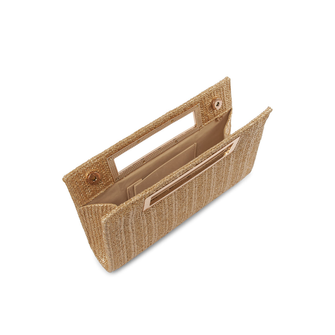 The 'Delma' clutch bag features a metal handle and button closure. A chain strap is included to transform this into a crossbody bag. The perfect size for all the essentials.