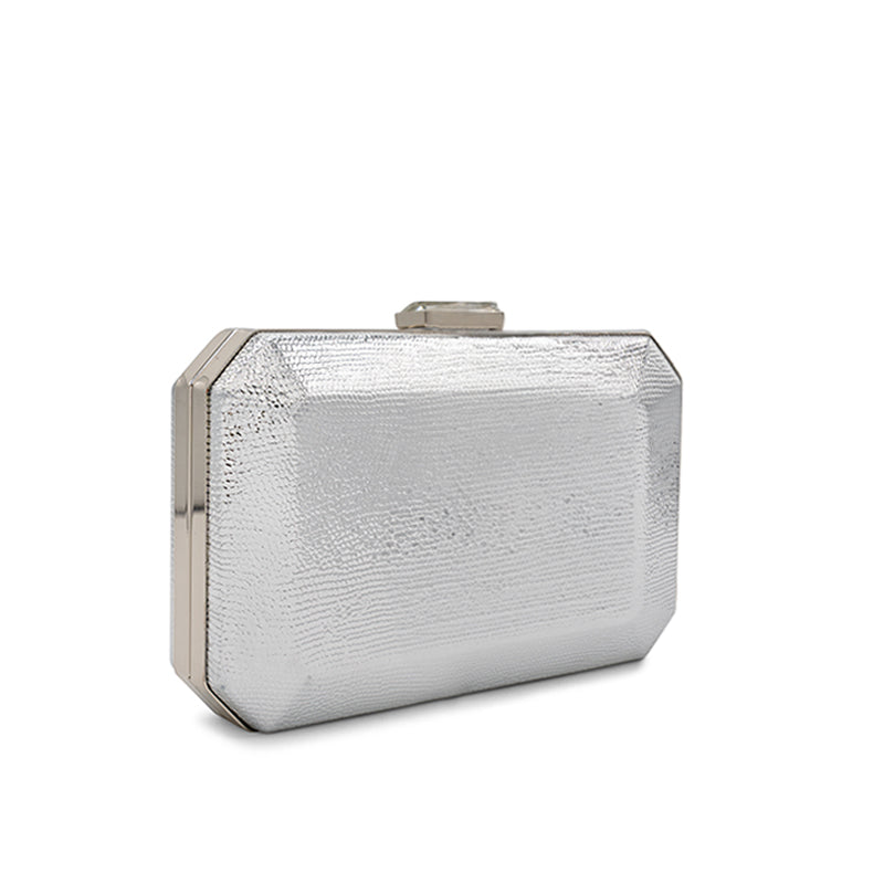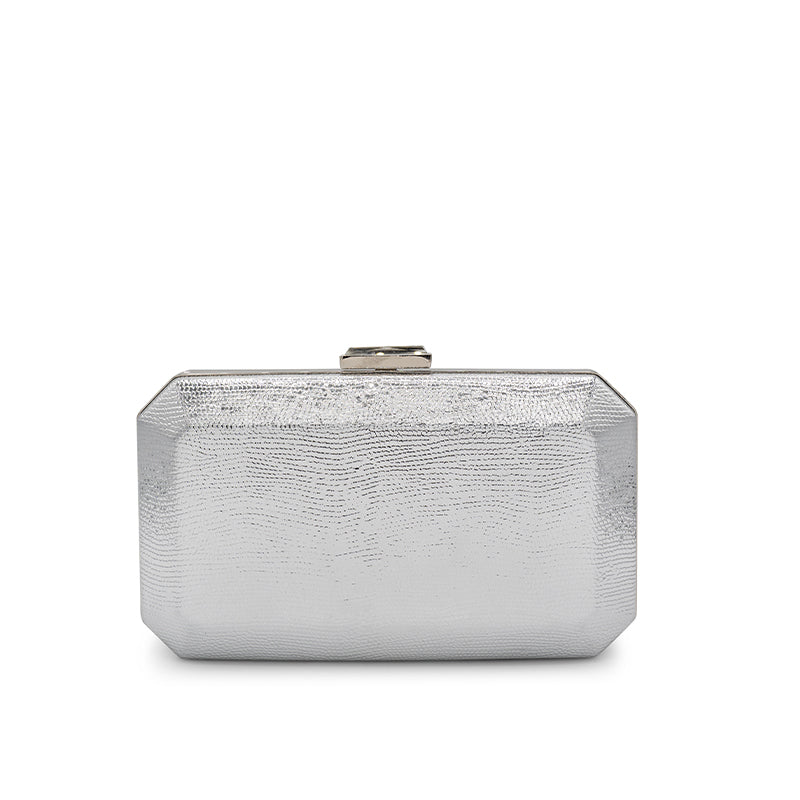 The Dimitra clutch bag by Paradox London is a stunning octagonal shape box clutch. The lizard effect metallic fabric adds interest to any special occasion look. Chain strap is included.