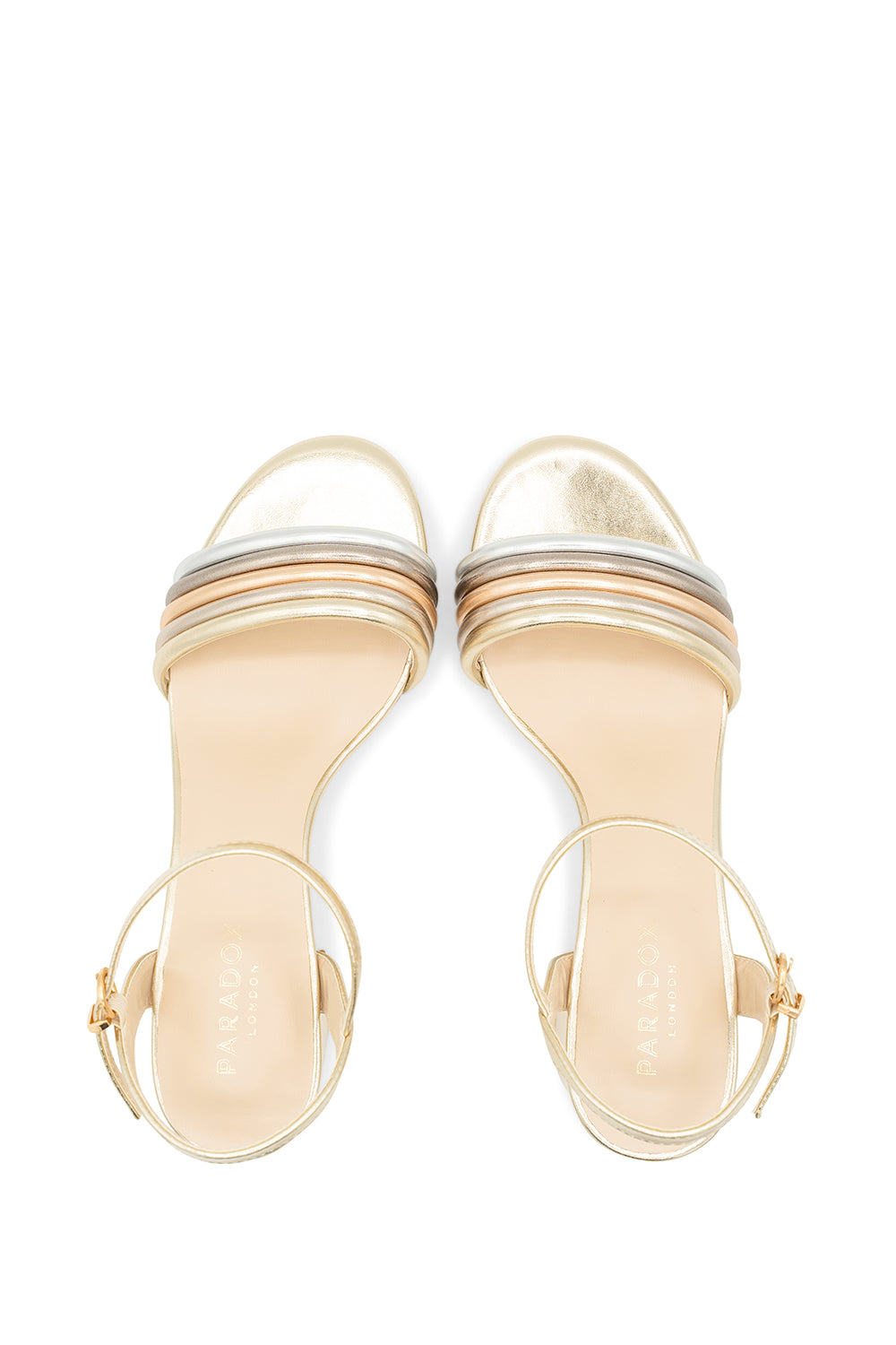Paradox London Ilaria sandals feature tubualar strap detailing. The block heel is a great mid height to add glamour to your look without compromising on comfort.