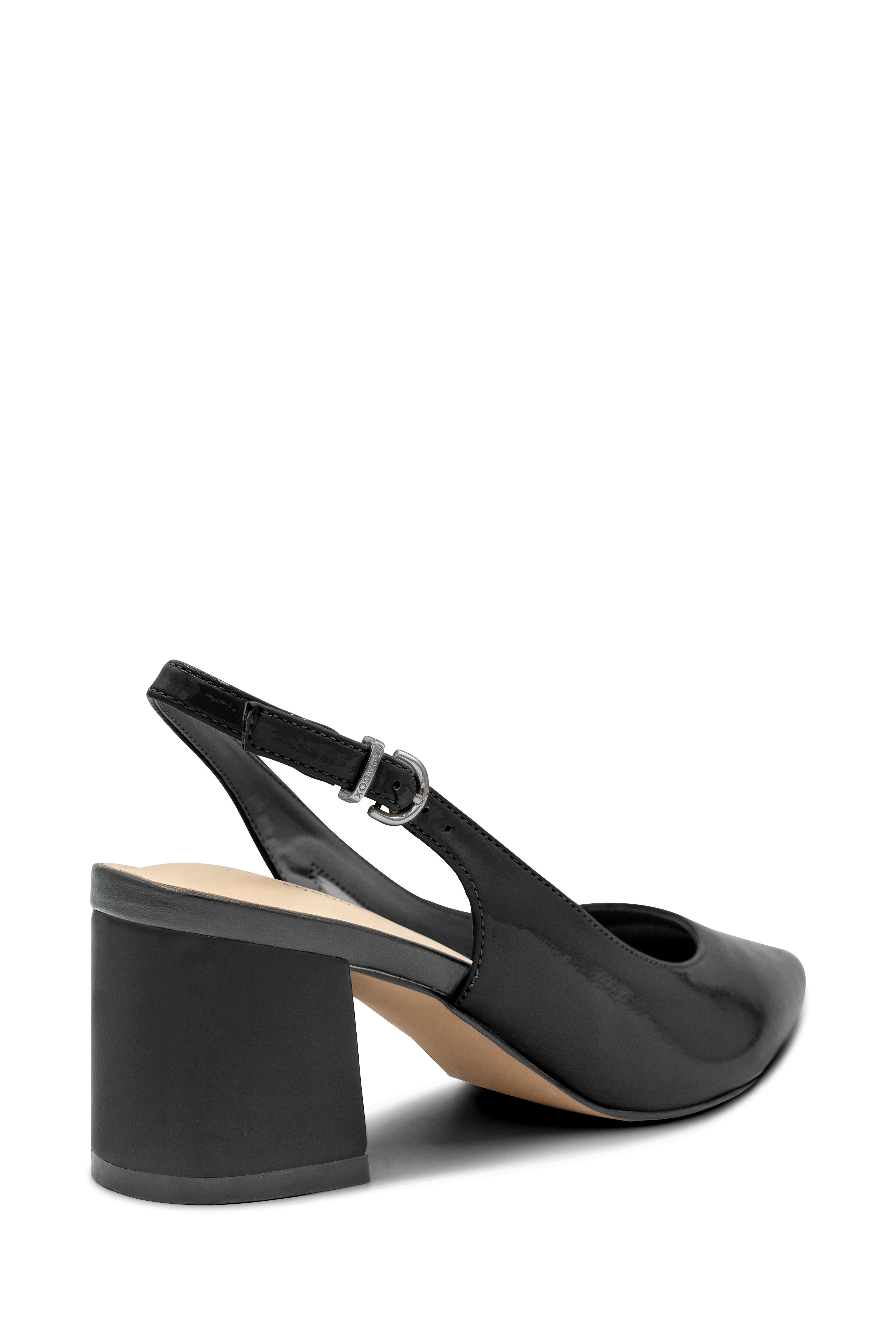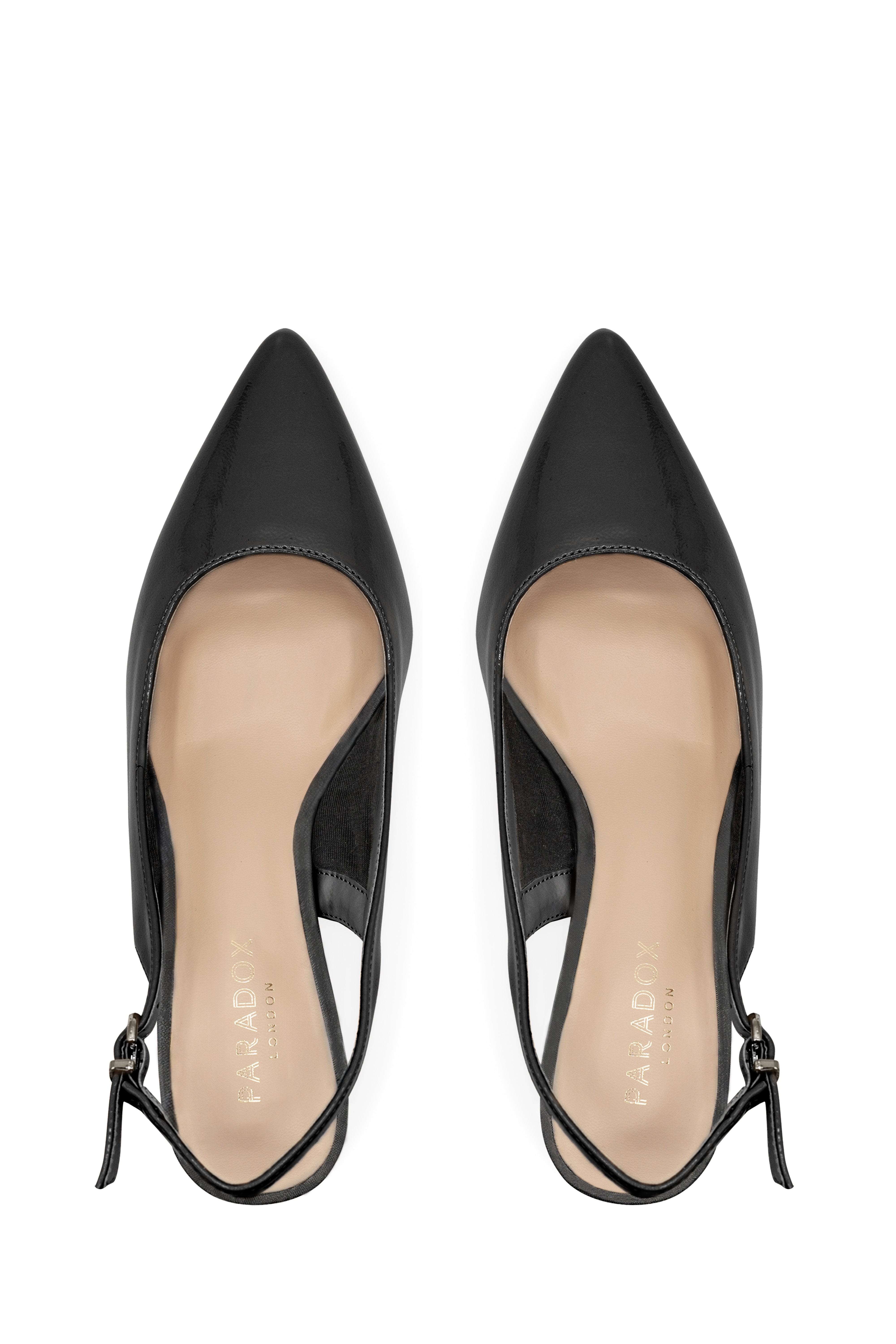 Look chic in the Isabel Sling Back Heel by Paradox London featuring a block heel, with an adjustable strap creating the perfect fit. In a patent material that effortlessly adds a chic finish to any day or evening look.