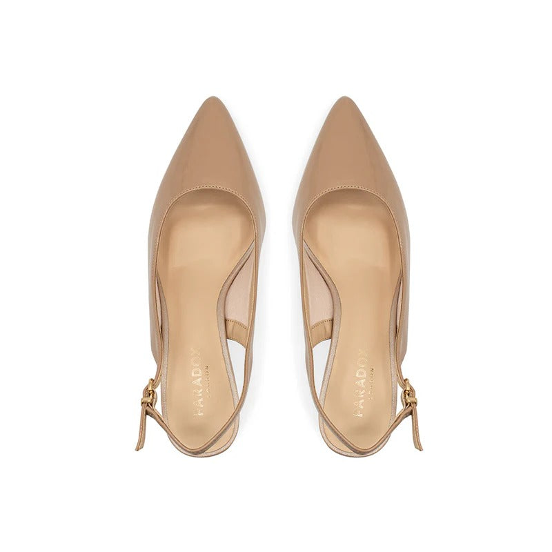 Look chic in the Isabel Sling Back Heel by Paradox London featuring a block heel, with an adjustable strap creating the perfect fit. In a patent material that effortlessly adds a chic finish to any day or evening look.
