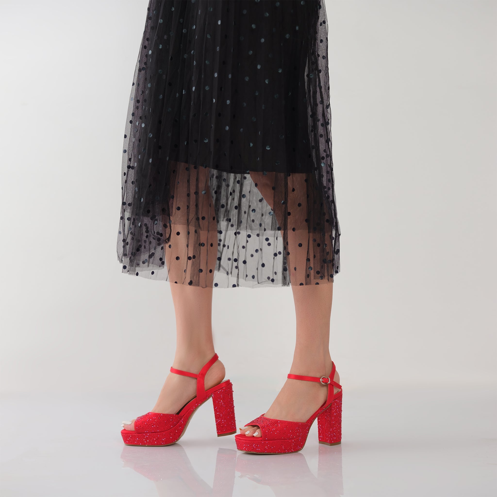 Lolitas is a platform high block heeled sandal. The swarovski crystals on luxury satin material, padded insole comfort and ankle fastenings ensure you are able to enjoy your events