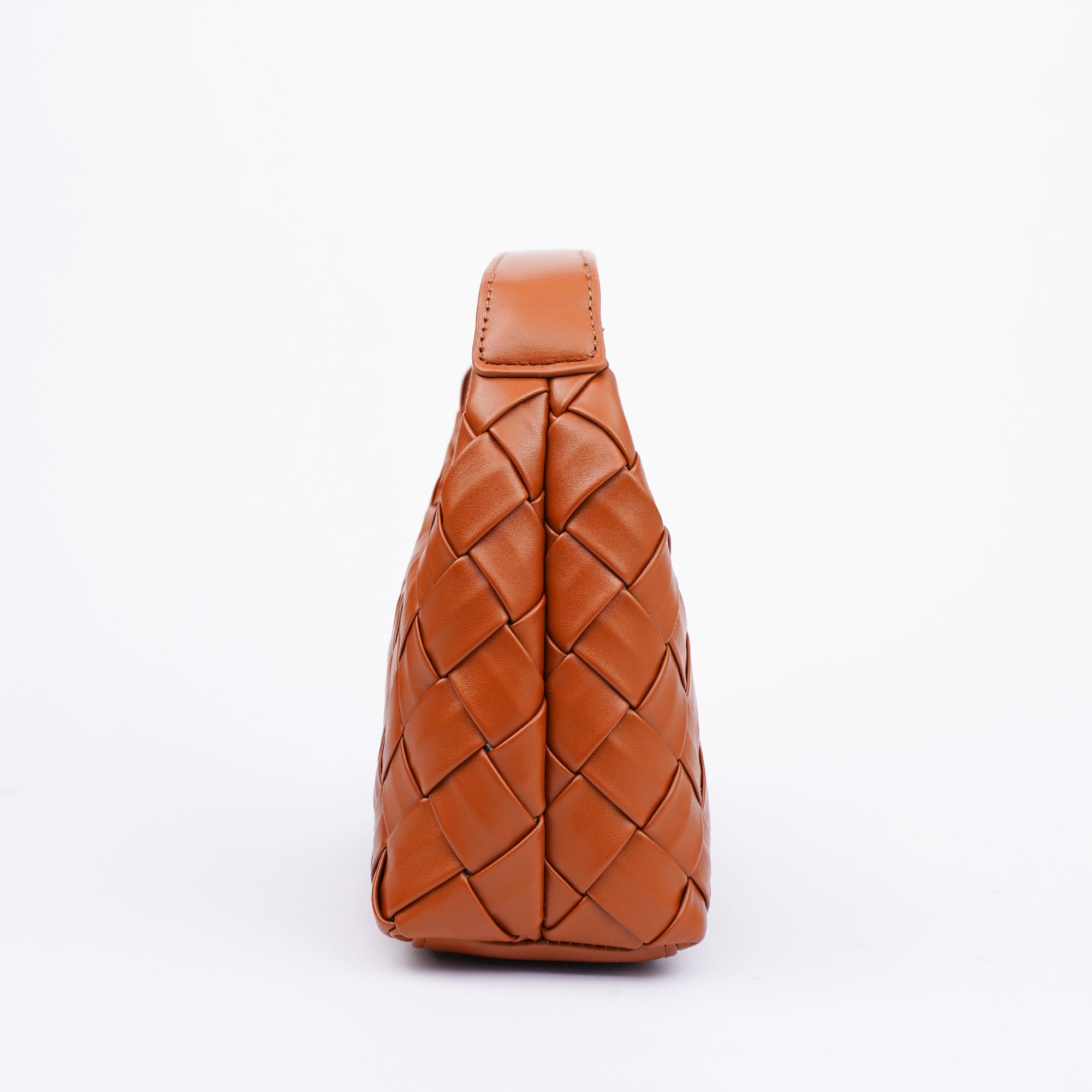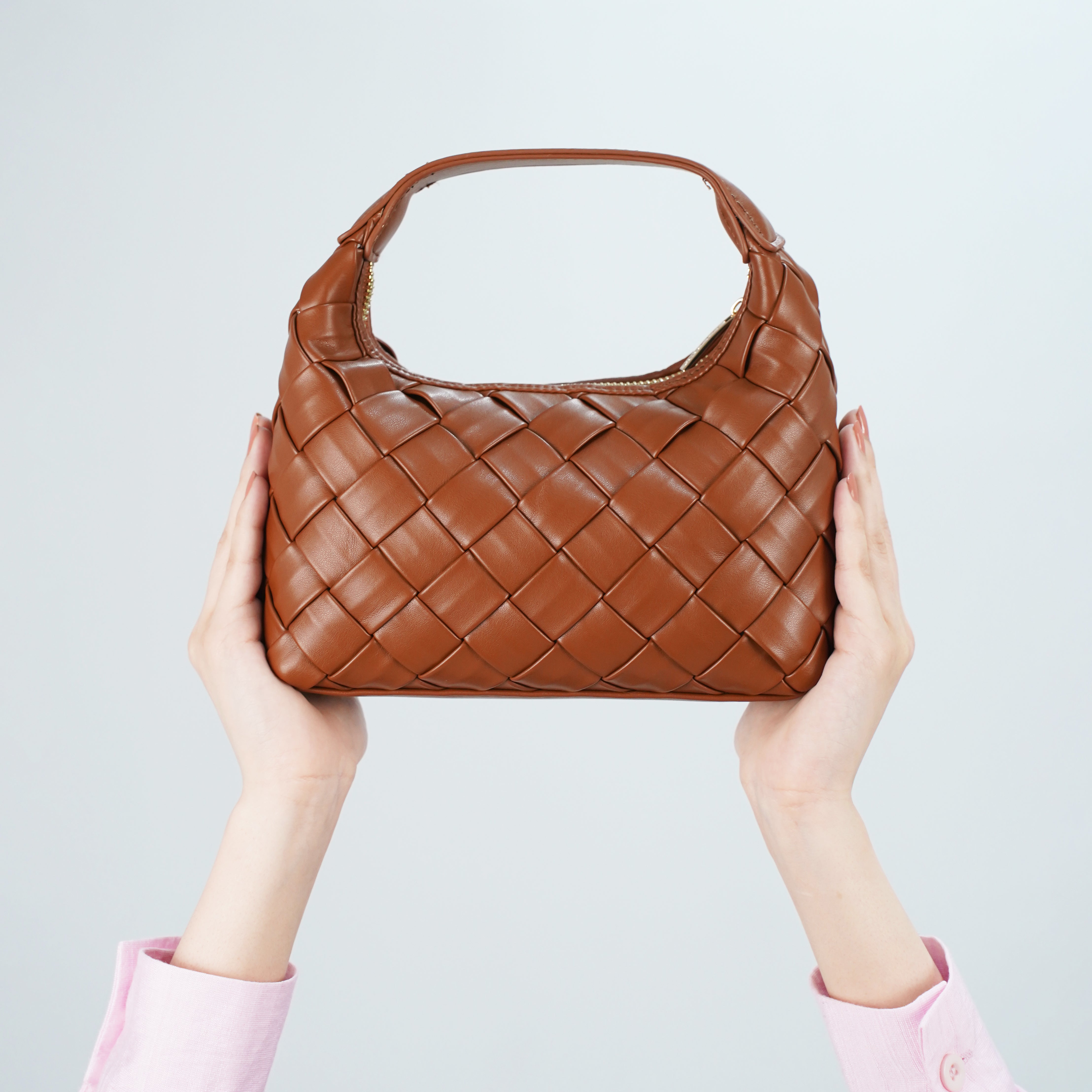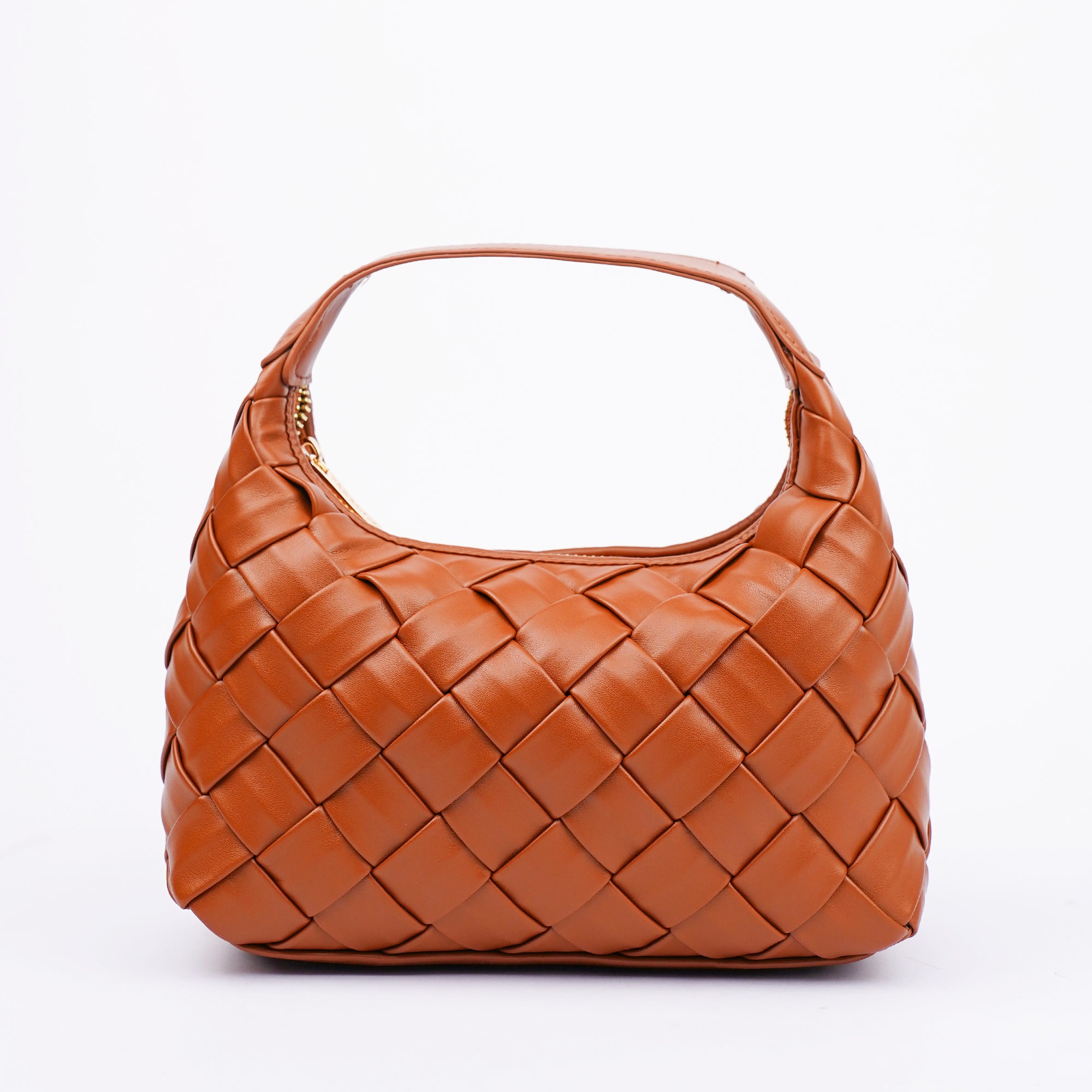 The Olevia shoulder bag in brown combines classic elegance with a modern edge. Crafted in a rich faux leather and featuring a sophisticated quilted woven texture, its compact yet practical silhouette makes it the perfect go to for both polished daytime looks and chic evening style.