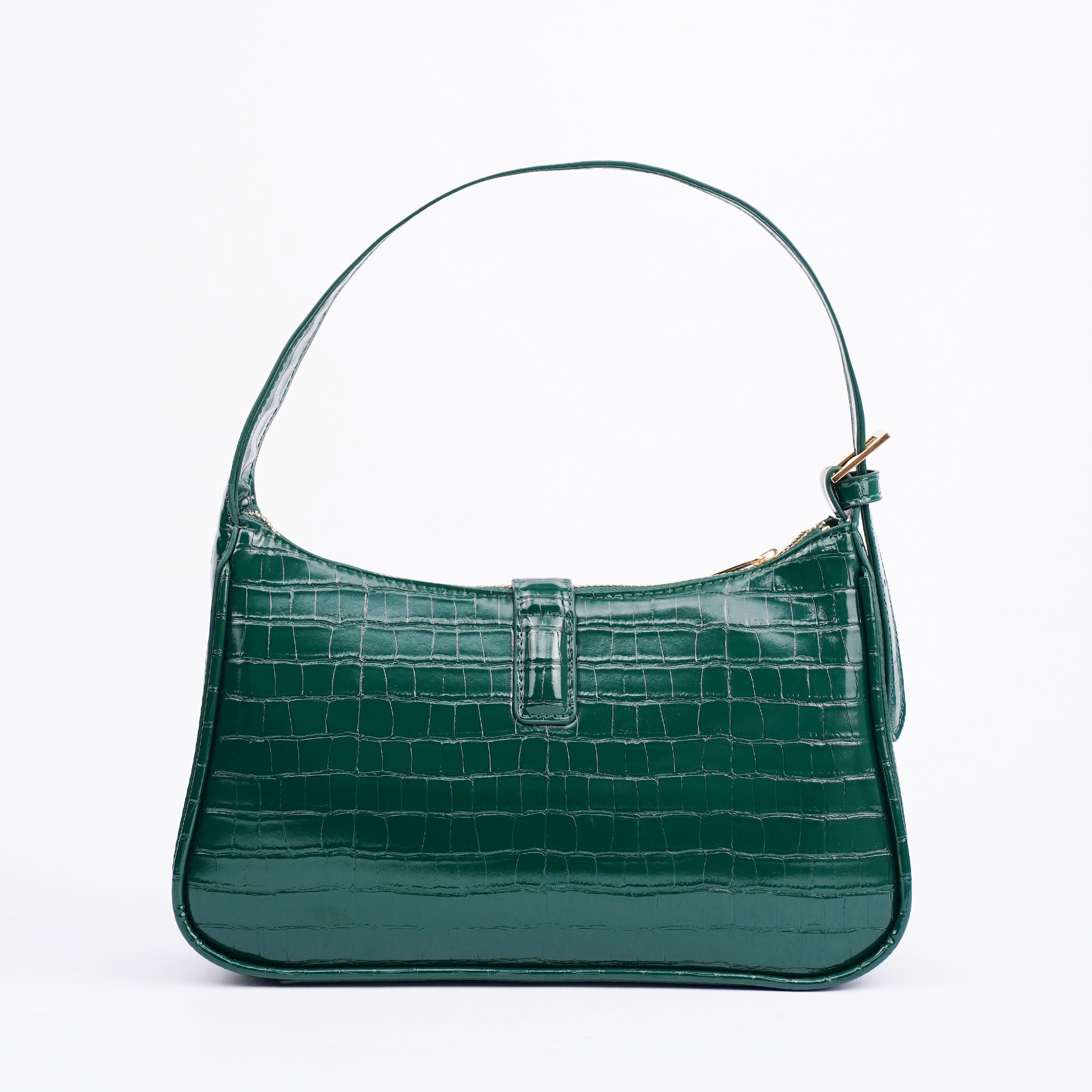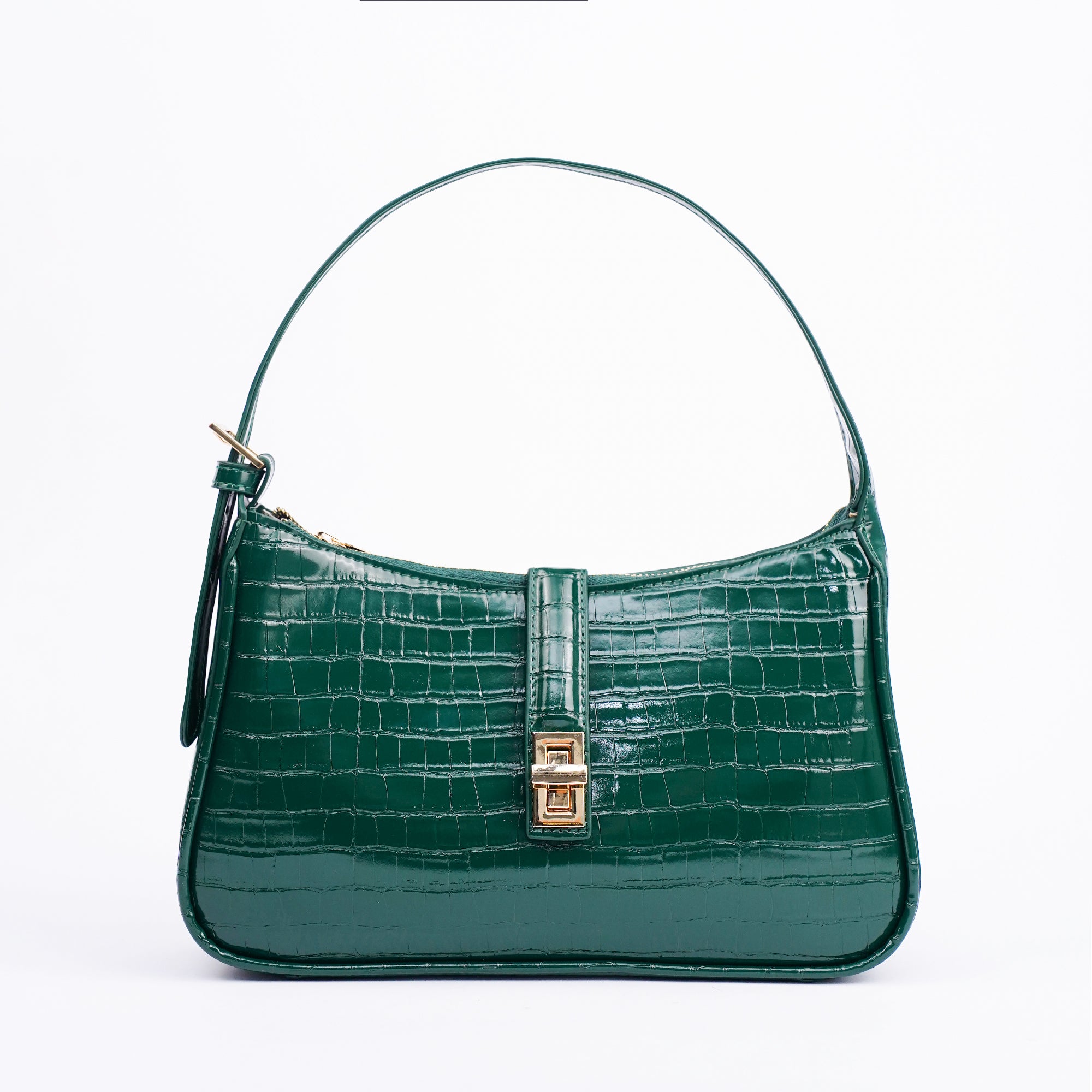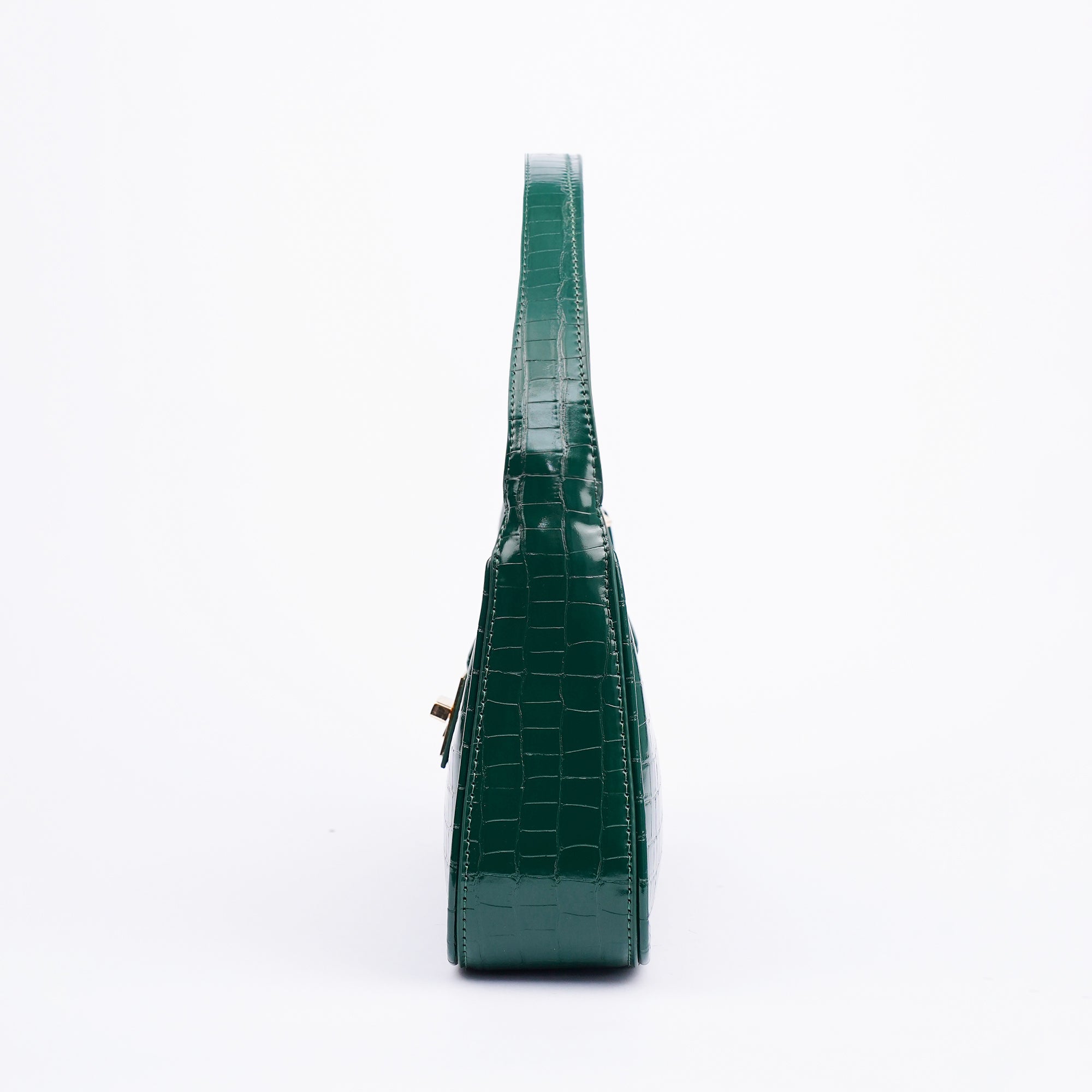 The Orabella shoulder bag in green combines classic elegance with a modern edge. Crafted in a high shine croc effect finish and featuring a structured rectangular silhouette with a gold tone clasp, its compact yet practical design makes it the perfect go to for both polished daytime looks and chic evening style.