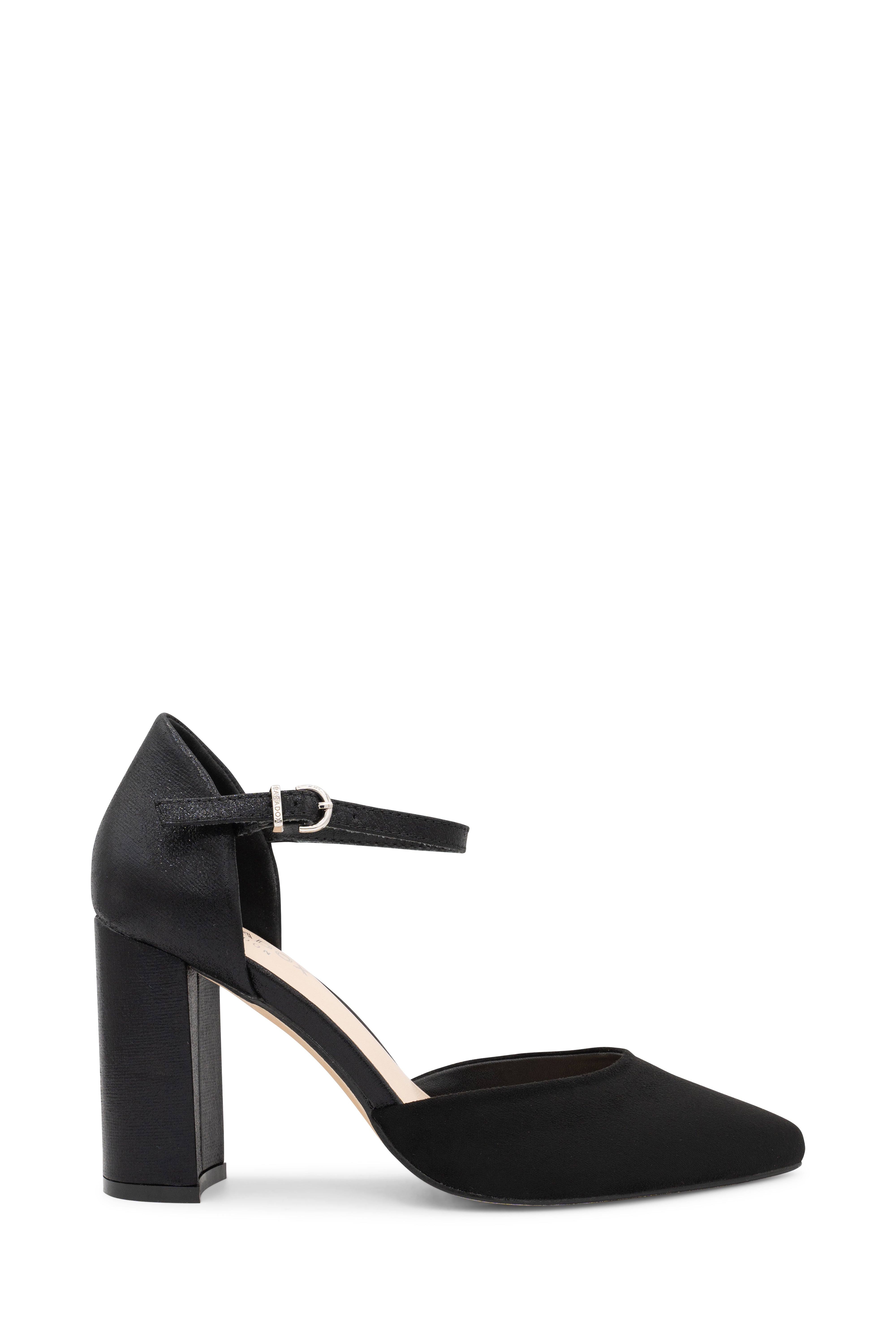 Looking for the perfect day to night heel, look no further than the Rana Heel by Paradox London. This pointed toe heel features an adjustable ankle strap and block heel to create a chic silhouette, finished in a micro suede material that styles perfectly with a wide range of looks.