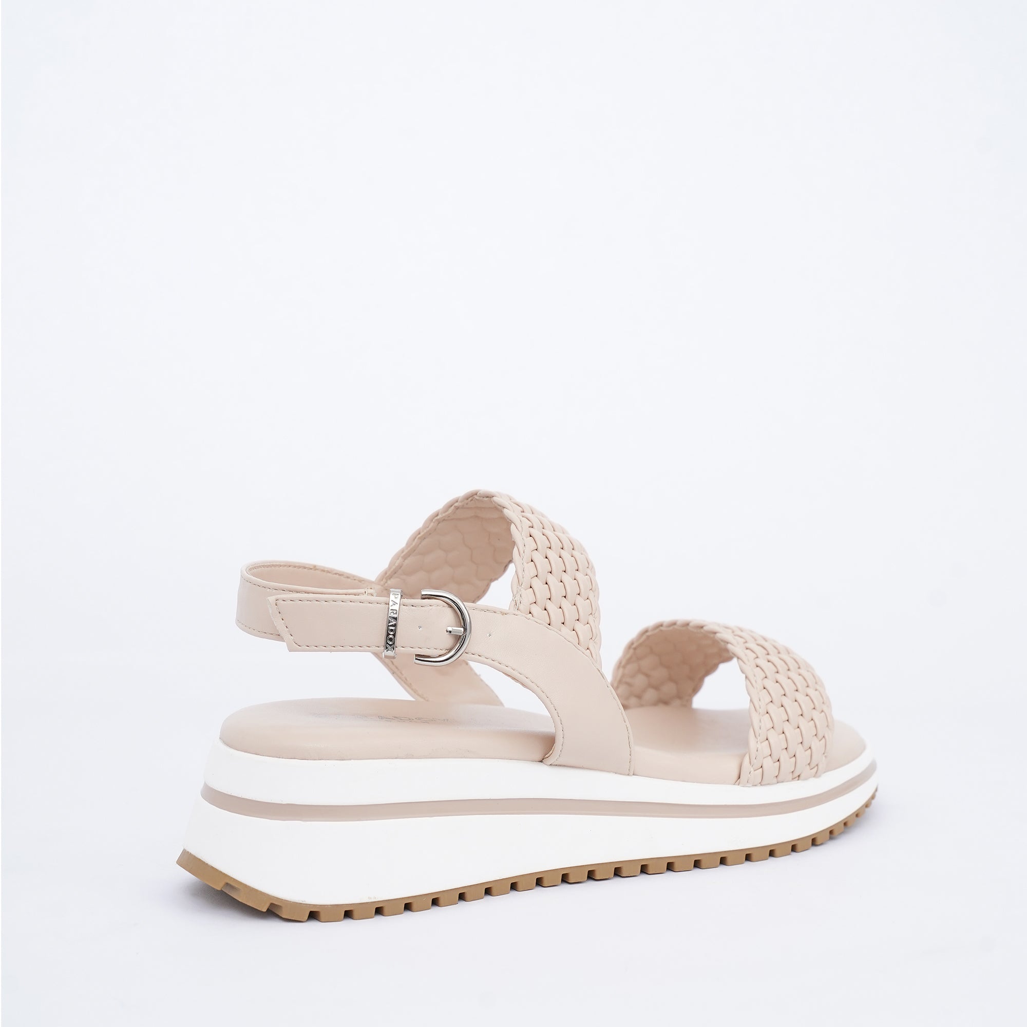 The Valeska sandal in beige delivers elevated, casual chic. It features two wide, beautifully woven straps crafted in a classic Beige shade, secured with an adjustable ankle strap. Defined by its comfortable, contrasting platform sole, this sandal adds contemporary texture and height without compromising ease of wear.